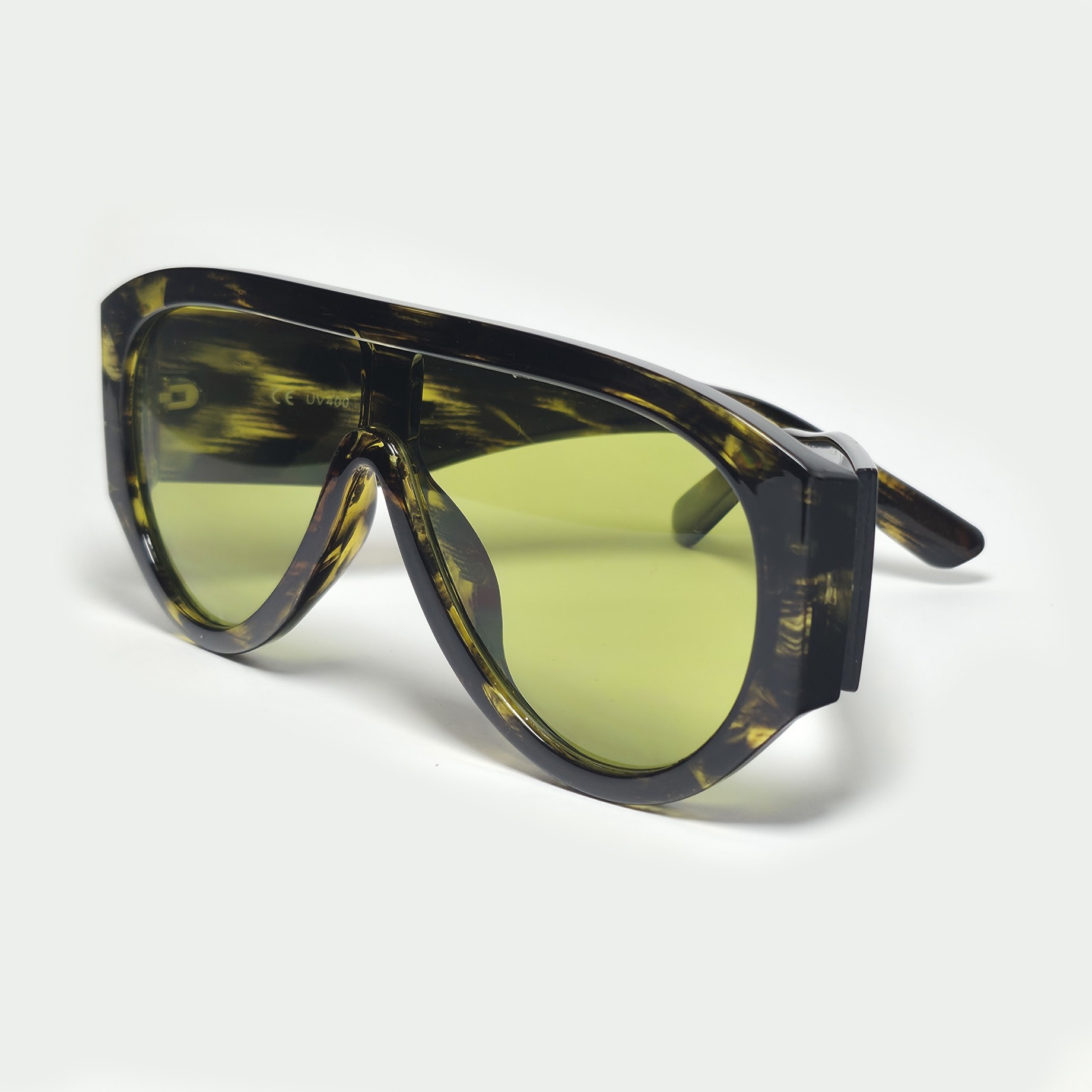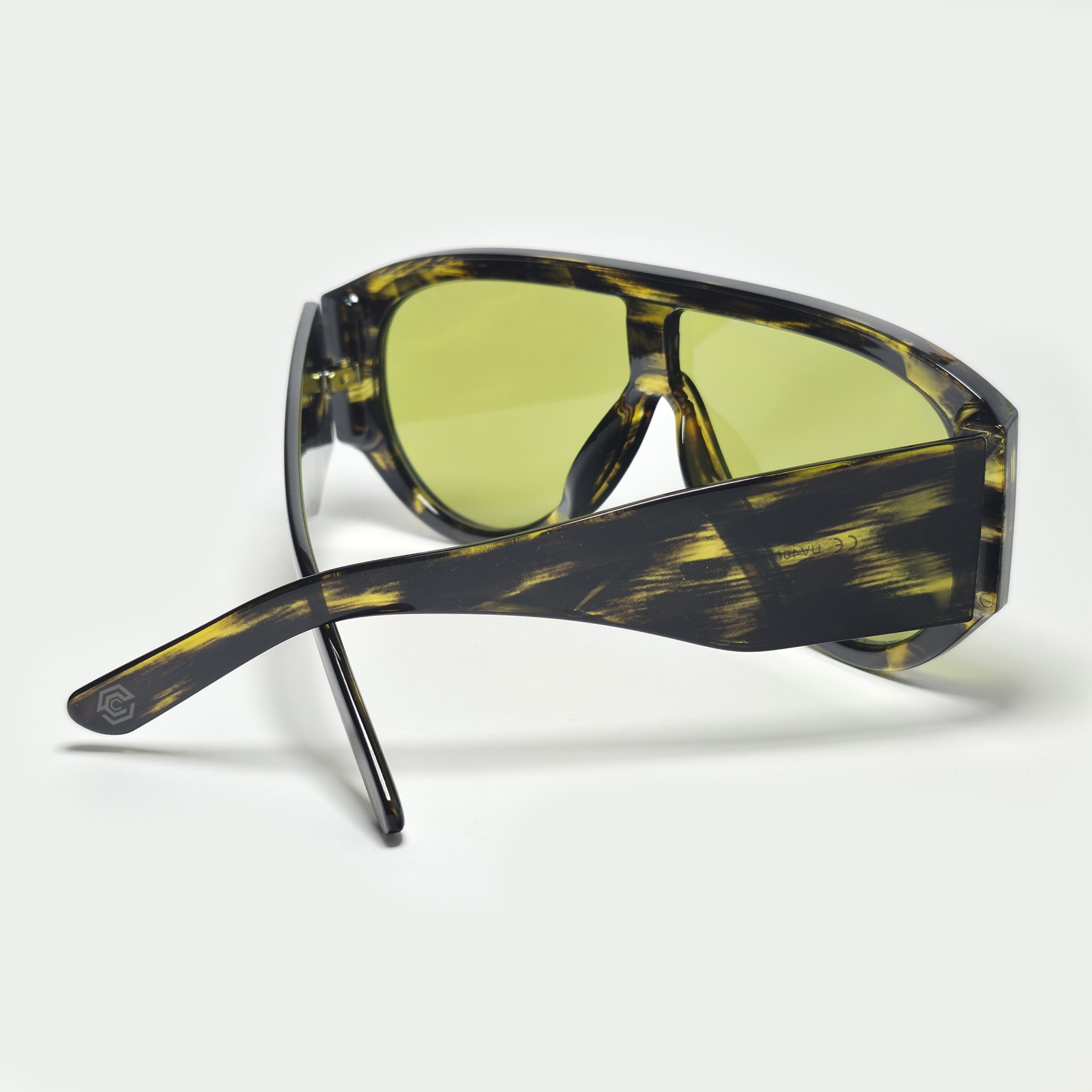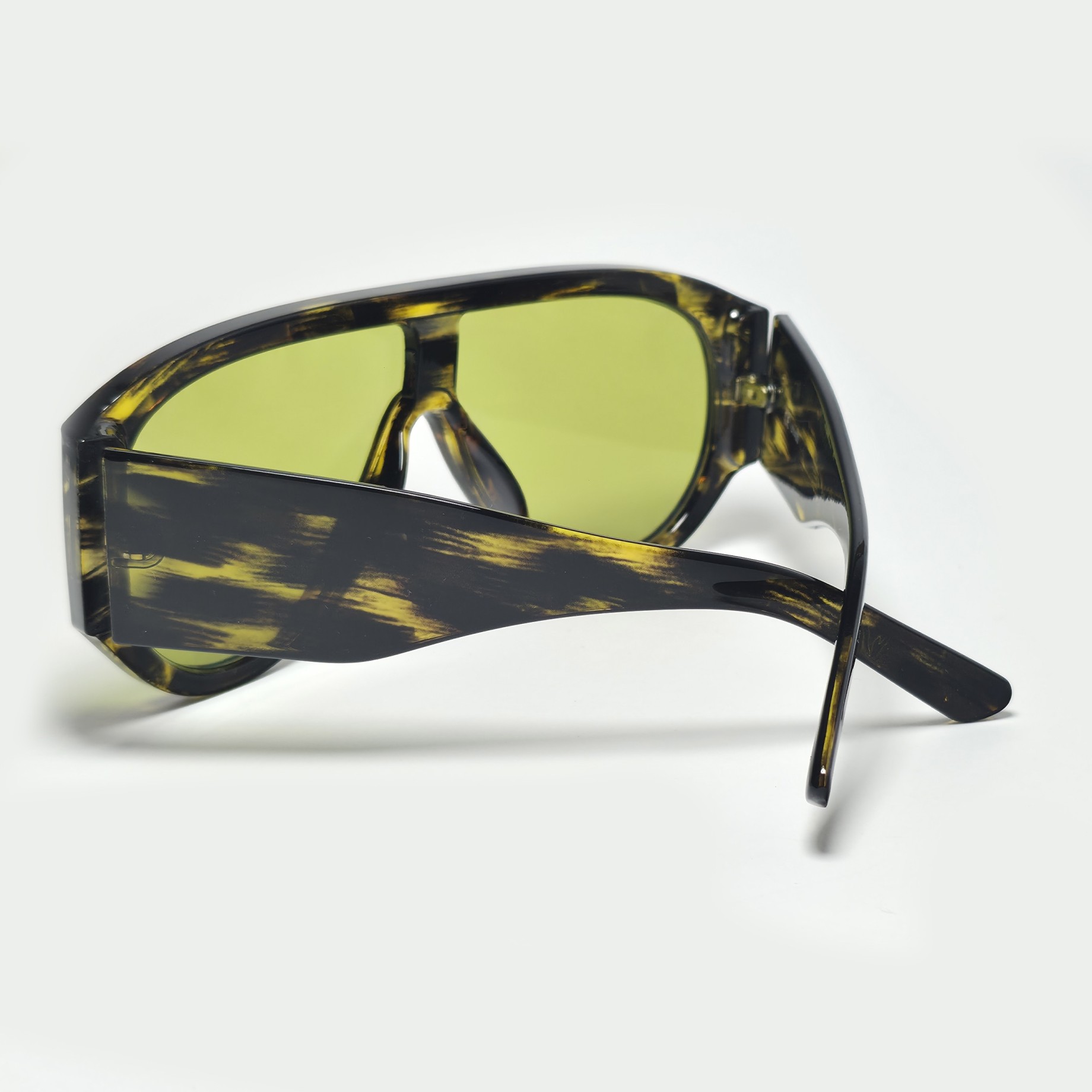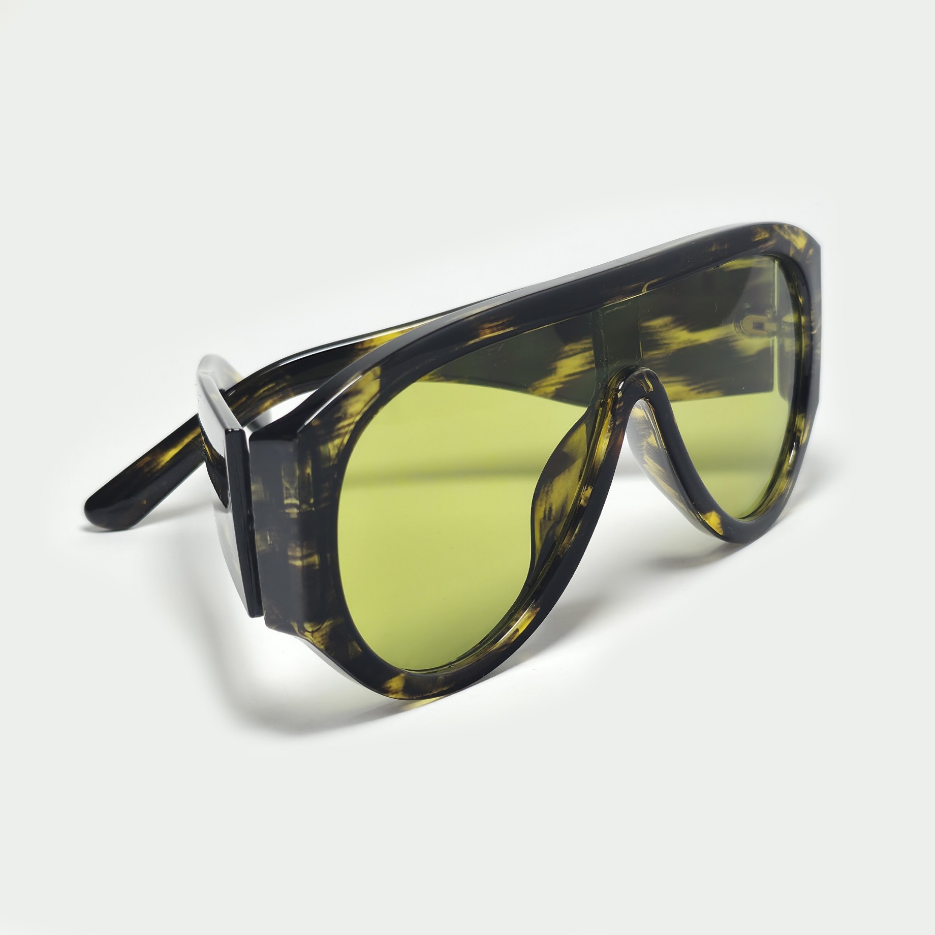 Berlín Acid es distorsión con forma. El contraste entre el carey claro y las lentes verde neón crea una pieza visualmente intensa para fiestas, festivales y lugares con estilo rave.
