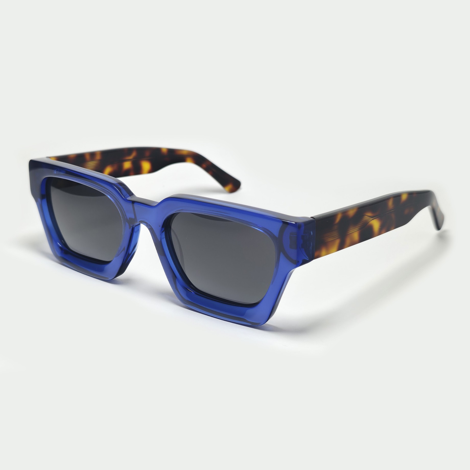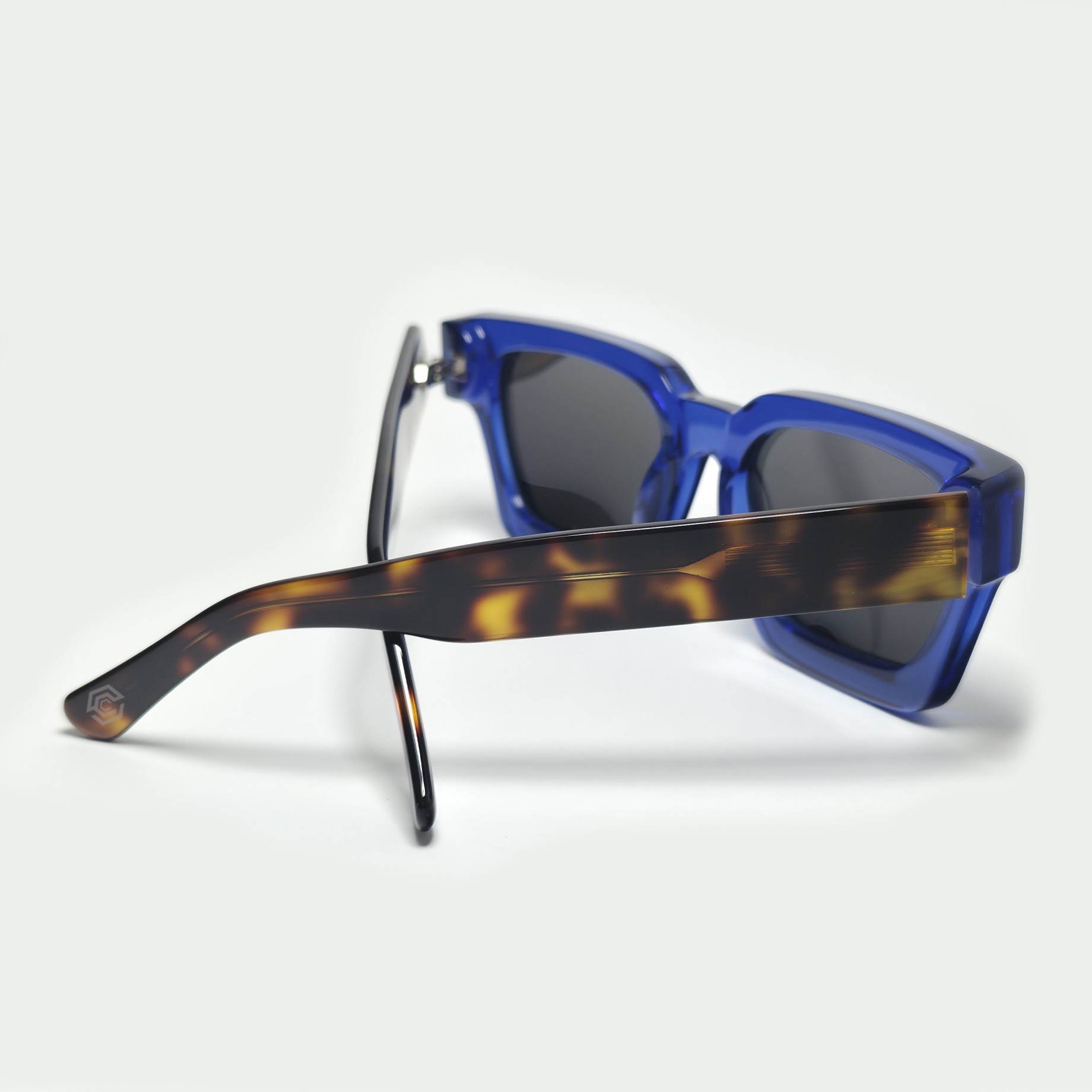 Una combinación atrevida: frente azul vibrante y patillas de carey clásico. Un diseño único que no pasa desapercibido, perfecto para quien busca algo diferente.