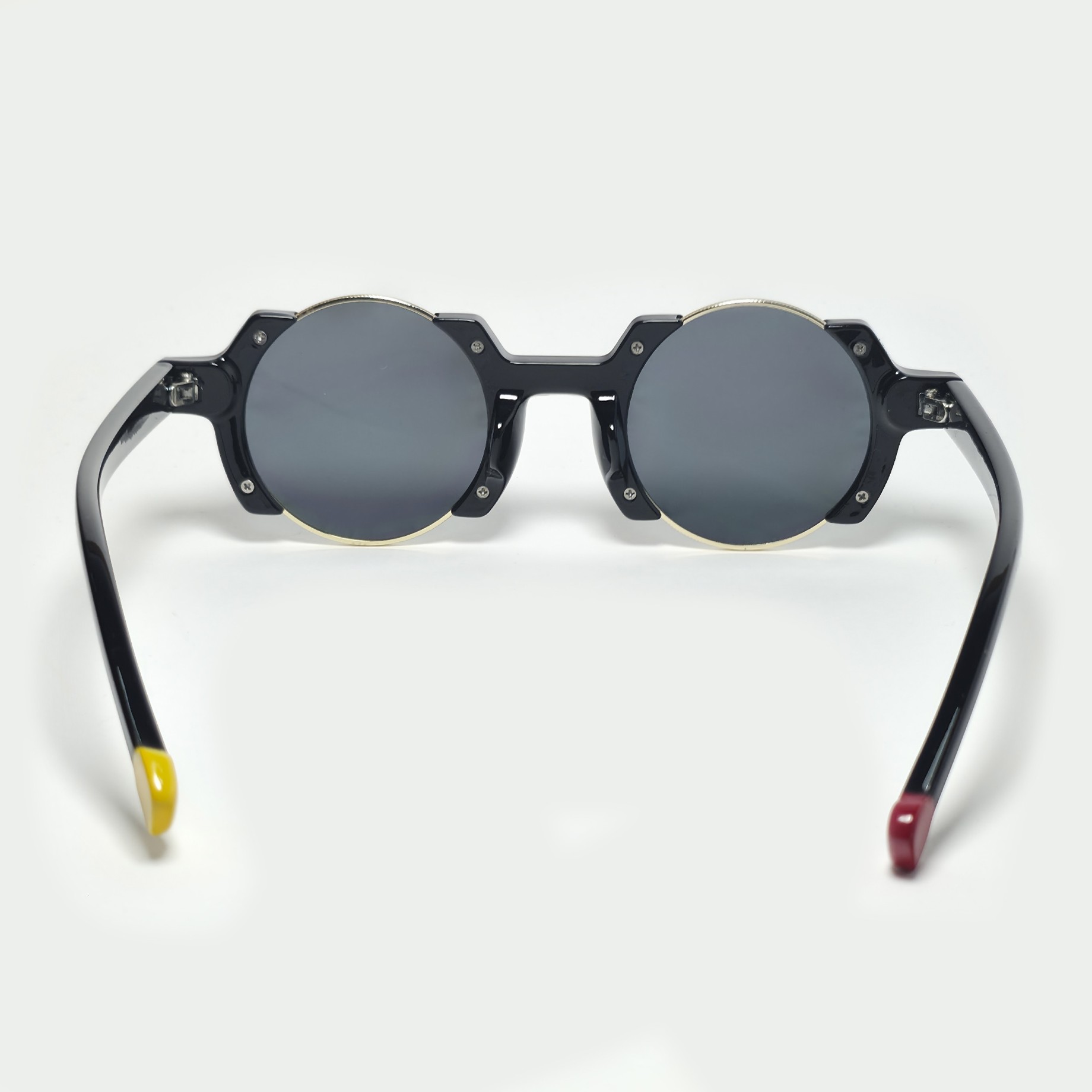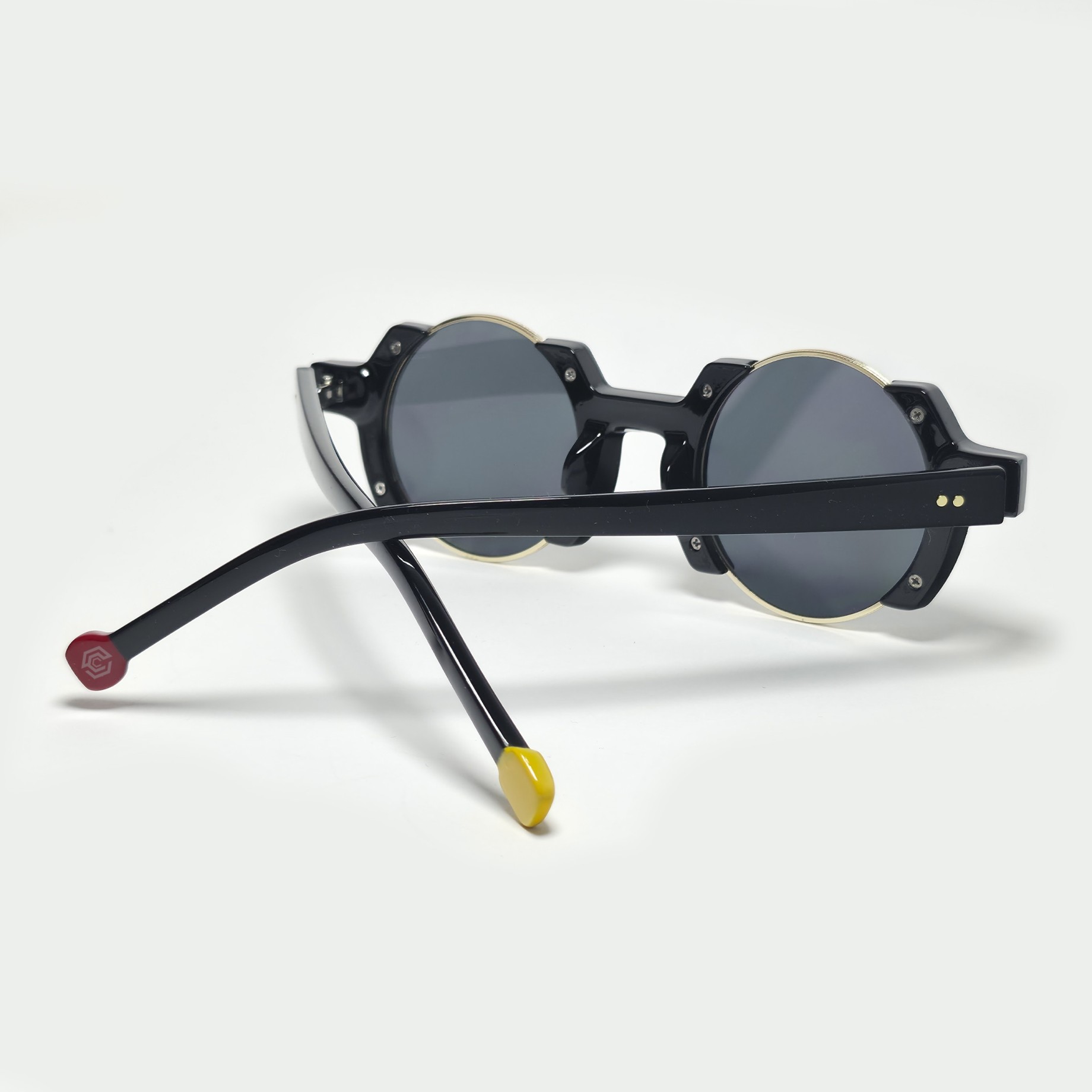 Representa el núcleo del estilo clubber con una estructura gráfica, redonda y firme. Diseño geométrico, acentos metálicos y terminaciones coloridas convierten este modelo en un punto de atención sin perder sobriedad.